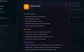 주요 기능으로는 통화 녹음의 자동 분석, 커뮤니케이션 품질 평가, 오류 및 놓친 기회의 식별, 그리고 판매를 증대시키기 위한 실행 가능한 권장 사항이 포함됩니다. AmoCRM 내에서 직접 빠르게 접근할 수 있는 AlgoAgent는 통화를 수동으로 검토하는 데 소요되는 시간을 없애는 것을 목표로 하여 판매 전략을 향상시키고자 하는 모든 사람에게 귀중한 추가 요소가 됩니다.
